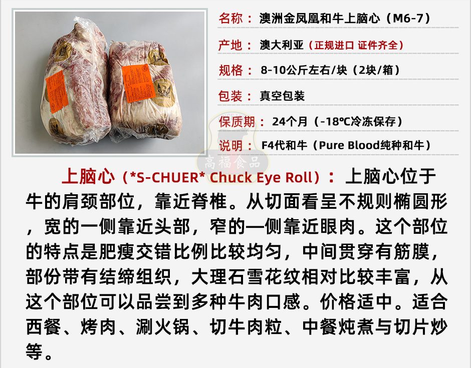 澳洲金鳳凰純種和牛上腦心(M6-7)