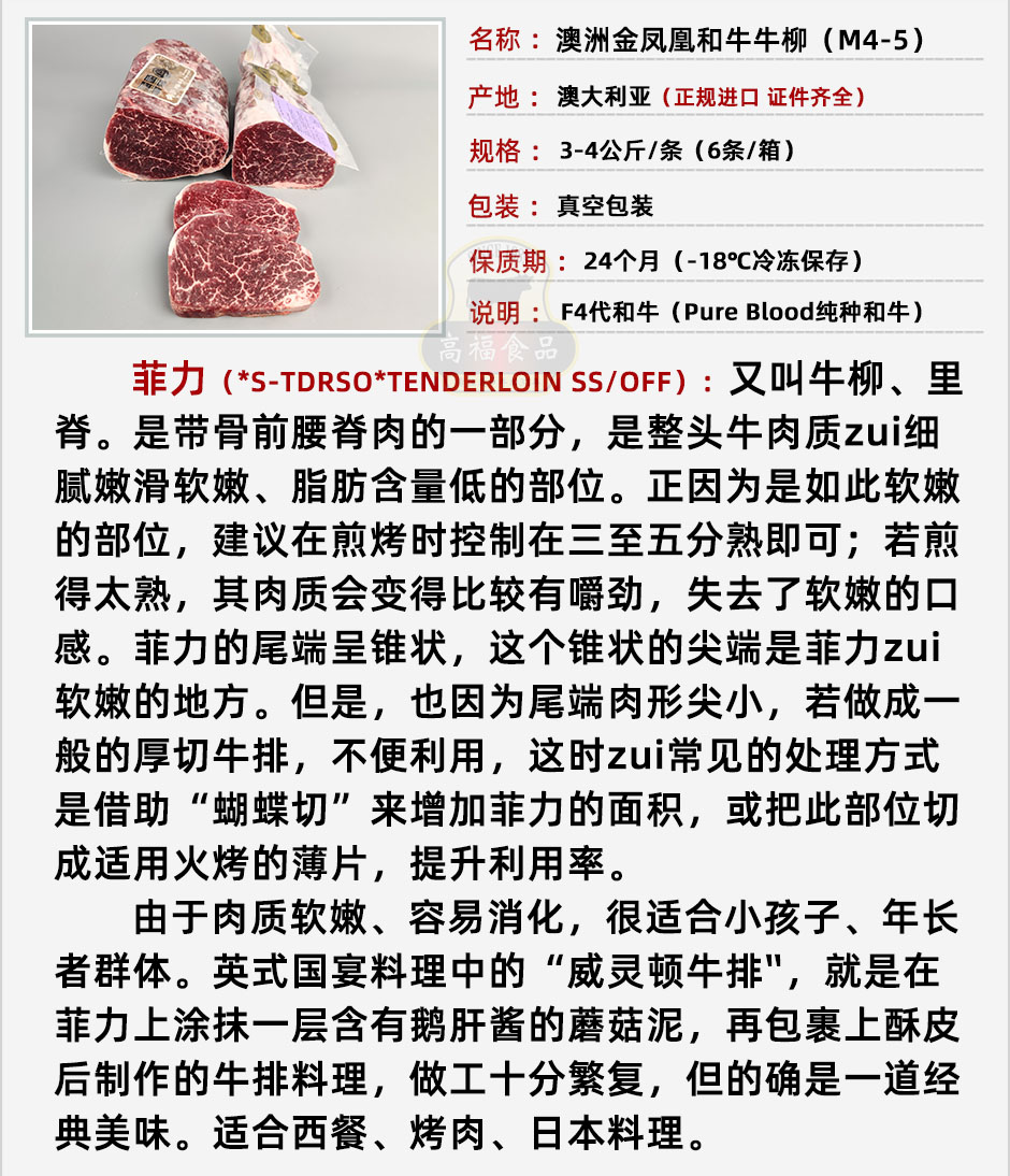 澳洲金鳳凰純種和牛牛柳(M4-5)