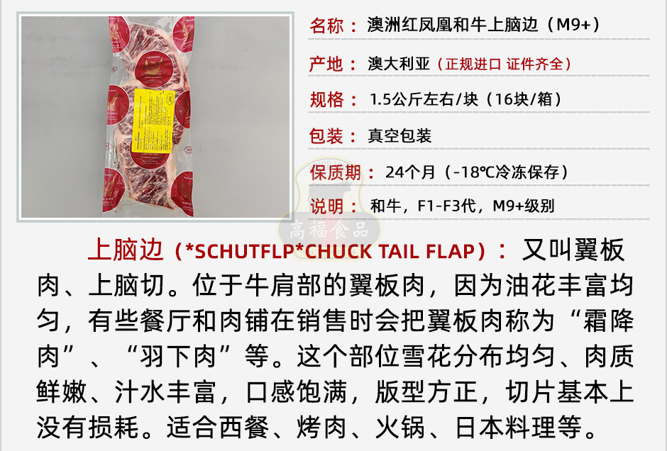澳洲紅鳳凰和牛翼板肉(M9+)