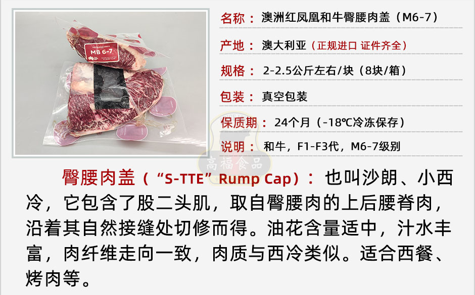 澳洲紅鳳凰和牛臀腰肉蓋(M6-7)