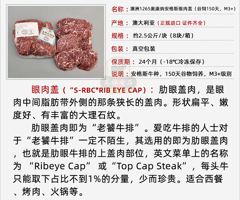 澳洲1265奧康納安格斯眼肉蓋(150天,M3+)